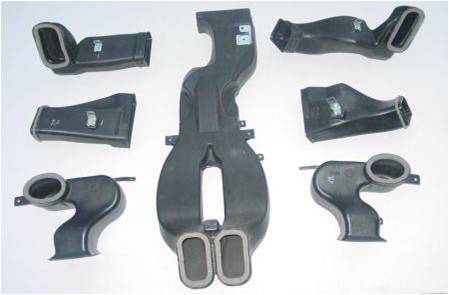 Manufacturing welded degassing tank, and nozzle defroster by injection moulding.